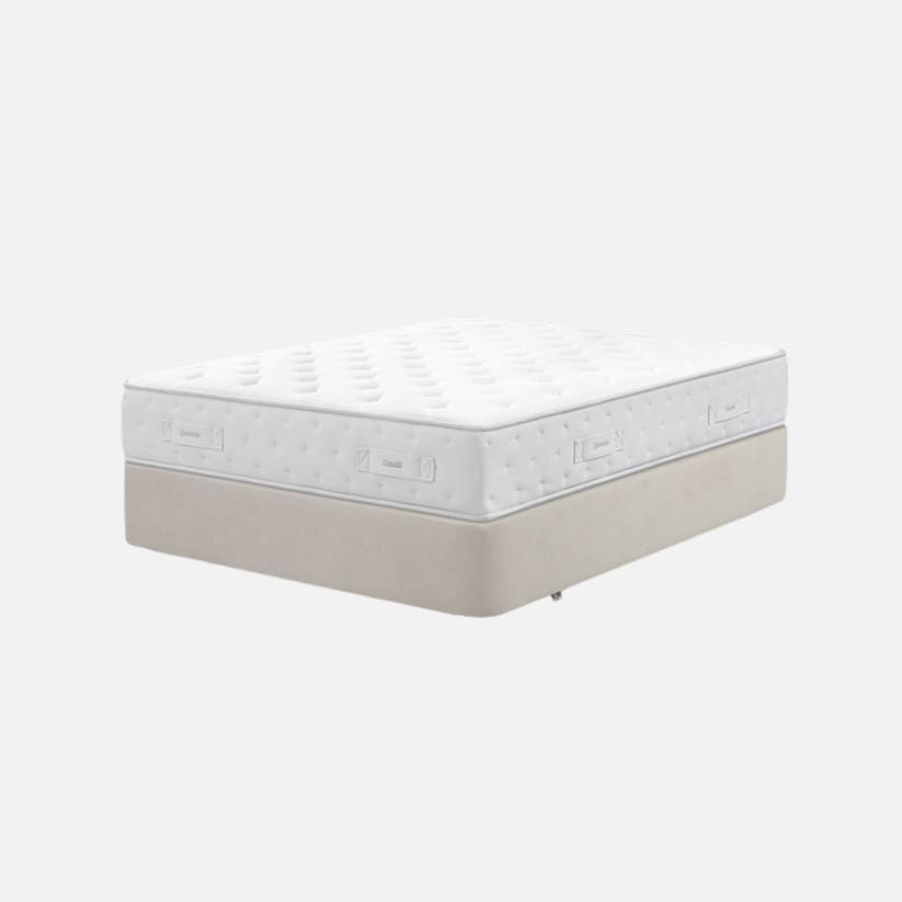Diseñado sin patas para una estética minimalista y moderna, Calma incorpora una tapa con marco tapizado y una zona central en tejido 3D transpirable Drycare, que favorece la circulación del aire y ayuda a mantener el colchón en óptimas condiciones.