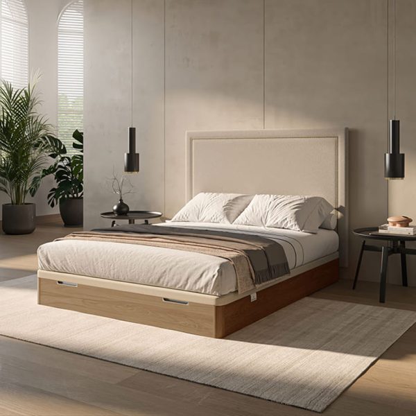 Ofrece un soporte firme y estable para tu colchón, mientras que su estética cuidada convierte a Smart en un elemento decorativo único. Además, incorpora gomas antipolvo para un sellado limpio y un fondo de aglomerado de 12 mm con acabado textil, que refuerza su durabilidad y resistencia.