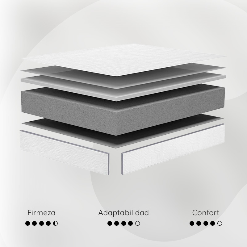 5 cm de Viscoelástica: Disfruta de una acogedora capa de 5 cm de viscoelástica que se adapta a la forma de tu cuerpo, brindando un soporte óptimo y aliviando la presión.